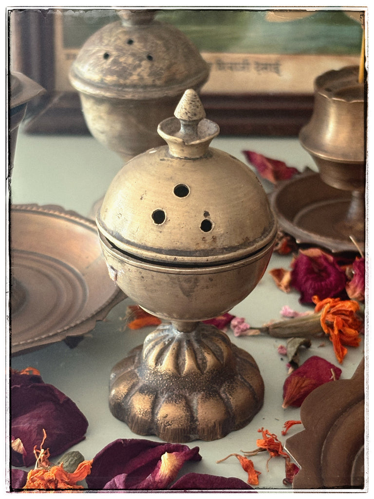 These lovelies will hold dhoop burning in the open ‘cup’ or closed, with smoke twirling through the holes evocatively, or can hold an incense stick.
